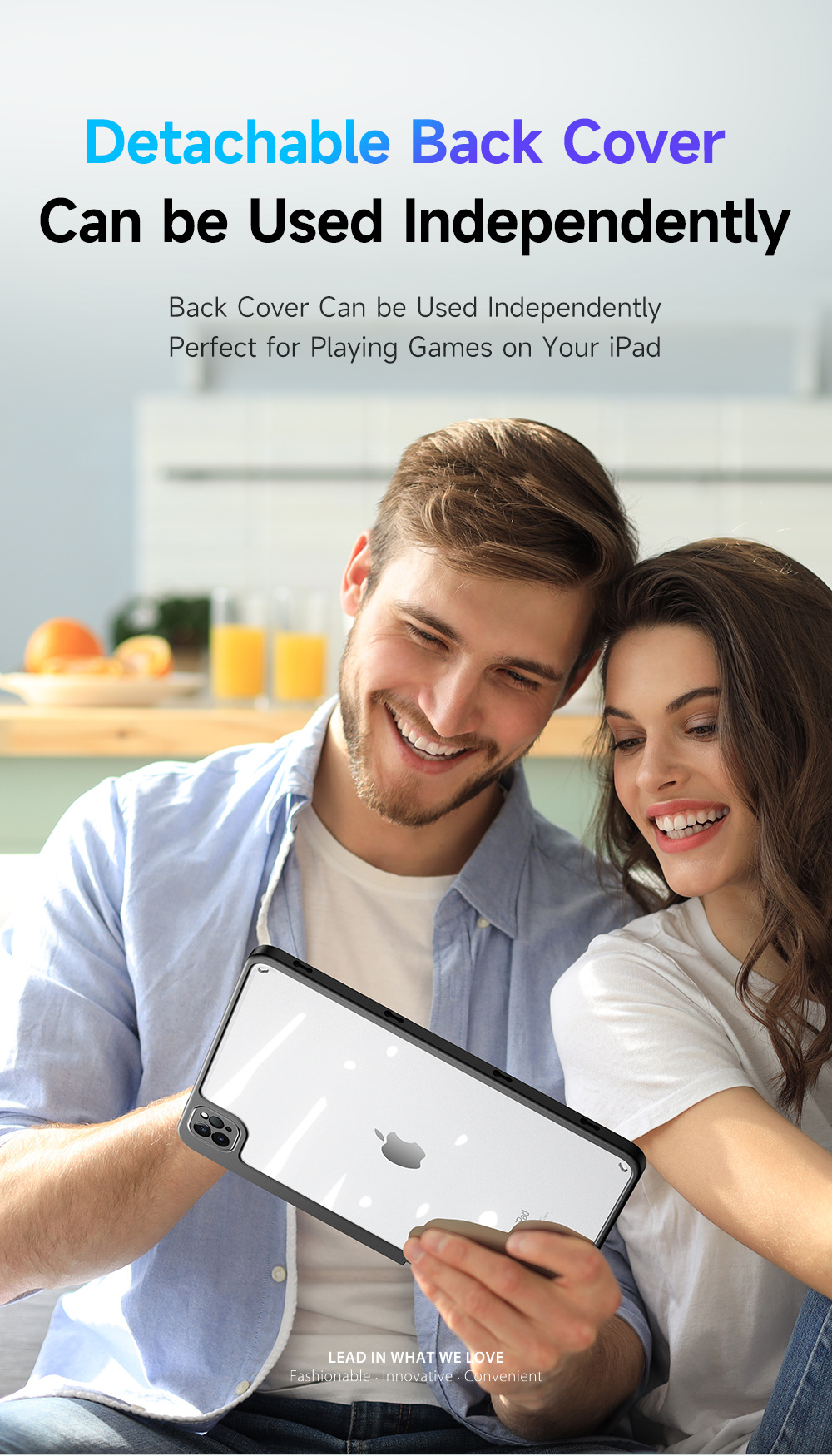 Mặt lưng trong suốt có thể tháo rời, giúp bạn linh hoạt sử dụng theo nhu cầu: vừa bảo vệ, vừa khoe trọn vẻ đẹp nguyên bản của iPad Pro. Đây là chi tiết mà người dùng trẻ, yêu thích sự cá tính chắc chắn sẽ đánh giá cao.