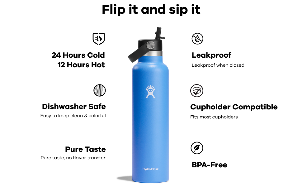 Bình nước giữ nhiệt Hydro Flask Standard Flex Straw Cap 21 OZ 621ml thiết kế chuẩn kích thước vừa vặn với hầu hết các khay đựng cốc của xe hơi và ngăn bên của balo – tiện lợi khi mang theo mọi lúc mọi nơi.