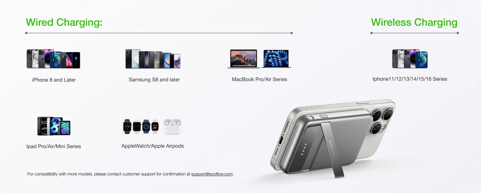 - iPhone (có MagSafe), iPad, MacBook Air, Android, Kindle, AirPods, smartwatch,…