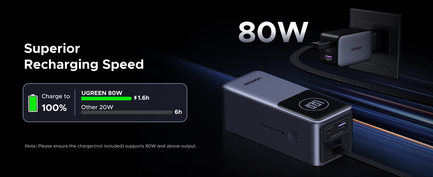- Đầu vào cáp USB C: 5V⎓3A/9V⎓3A/12V⎓3A/15V⎓3A/20V⎓4A Tối đa 80W