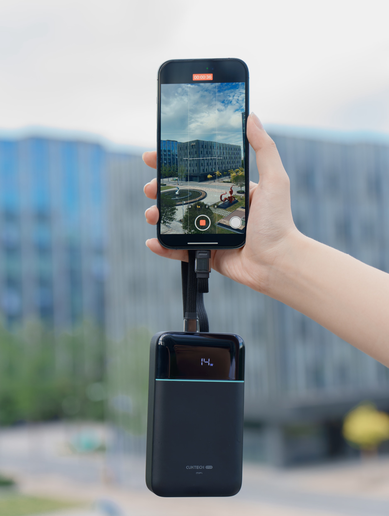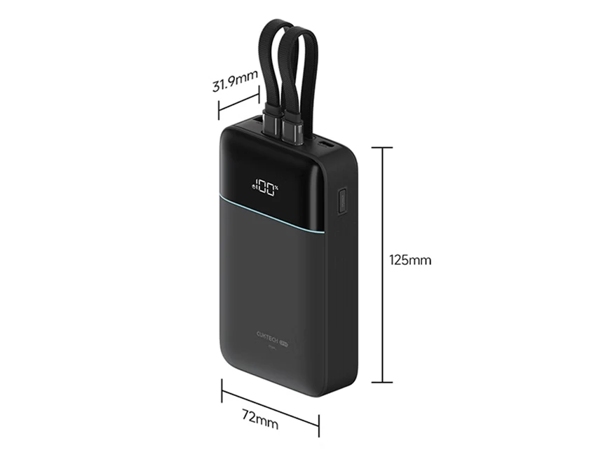 Pin dự phòng Cuktech hiển thị chính xác dung lượng pin còn lại và trạng thái sạc theo thời gian thực.
