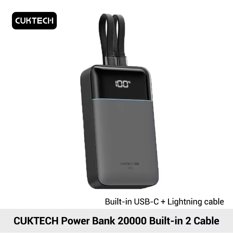 Cuktech CP24 Power Bank 20.000mAh- LPB200NL tích hợp cáp Type‑C & Lightning MFi, hỗ trợ sạc nhanh 40W, màn hình LED hiển thị thông minh – lựa chọn hoàn hảo cho Gen Z & dân văn phòng hiện đại.