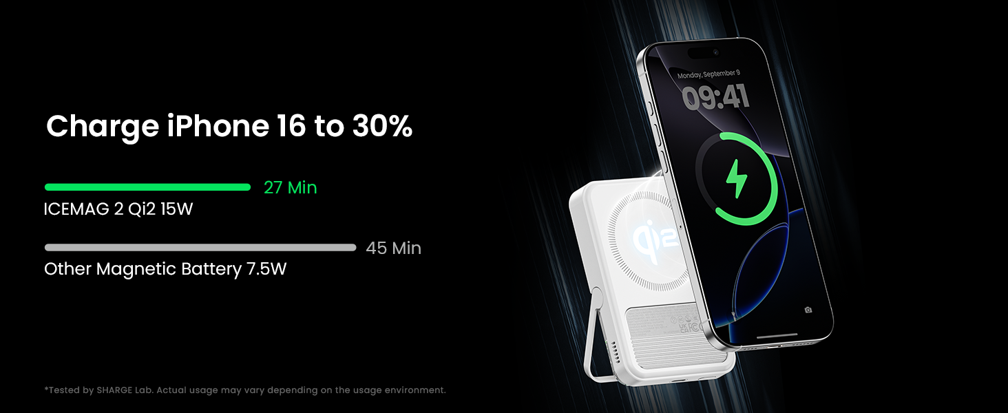 Shargeek ICEMAG 2 được trang bị công nghệ sạc không dây chuẩn Qi2 mới nhất, mang lại hiệu suất sạc nhanh hơn gấp đôi so với chuẩn Qi truyền thống. Với công suất lên đến 15W, thiết bị hoàn toàn tương thích với iPhone dòng 13 đến 16 có hỗ trợ MagSafe cũng như các smartphone Android hỗ trợ sạc không dây.