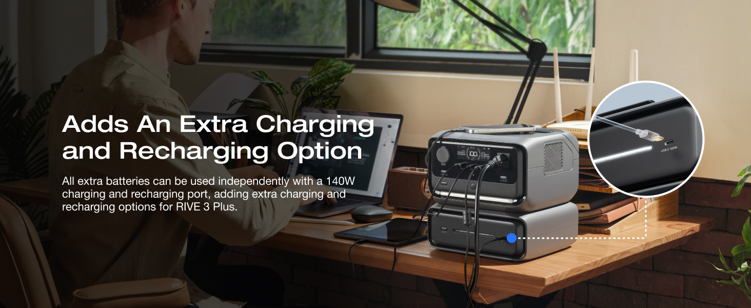 Không chỉ đơn thuần là một pin mở rộng, Pin EcoFlow RIVER 3 Plus Extra EB300 có thể hoạt động độc lập như một pin sạc dự phòng thông minh. Tích hợp cổng USB-C công suất lên đến 140W, sản phẩm hỗ trợ sạc nhanh cho laptop, smartphone, máy ảnh hay bất kỳ thiết bị di động nào hỗ trợ chuẩn sạc hiện đại.