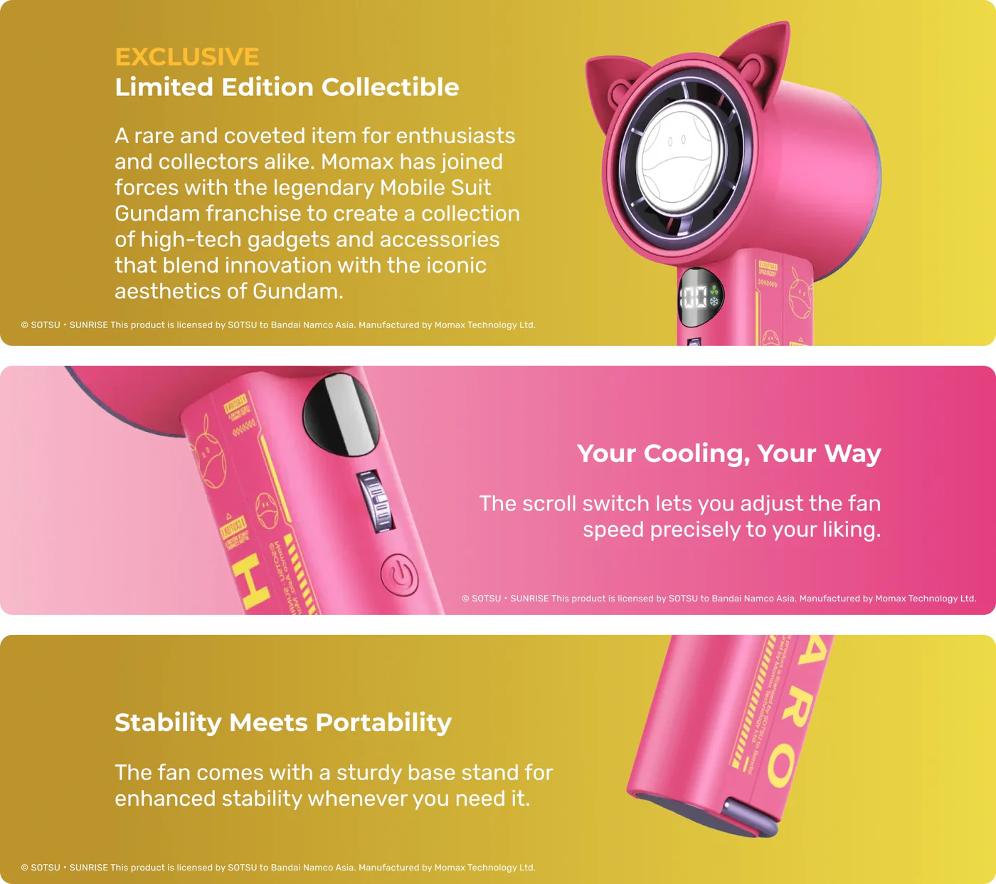 Không chỉ mạnh mẽ về hiệu năng, Momax 1°Go còn chinh phục người dùng trẻ nhờ thiết kế hiện đại, tinh gọn và dễ mang theo. Đây không đơn thuần là một chiếc quạt mini, mà còn là phụ kiện thời trang giúp bạn nổi bật giữa đám đông. Phiên bản giới hạn càng tăng thêm giá trị, phù hợp với những ai yêu thích sự khác biệt và cá tính.
