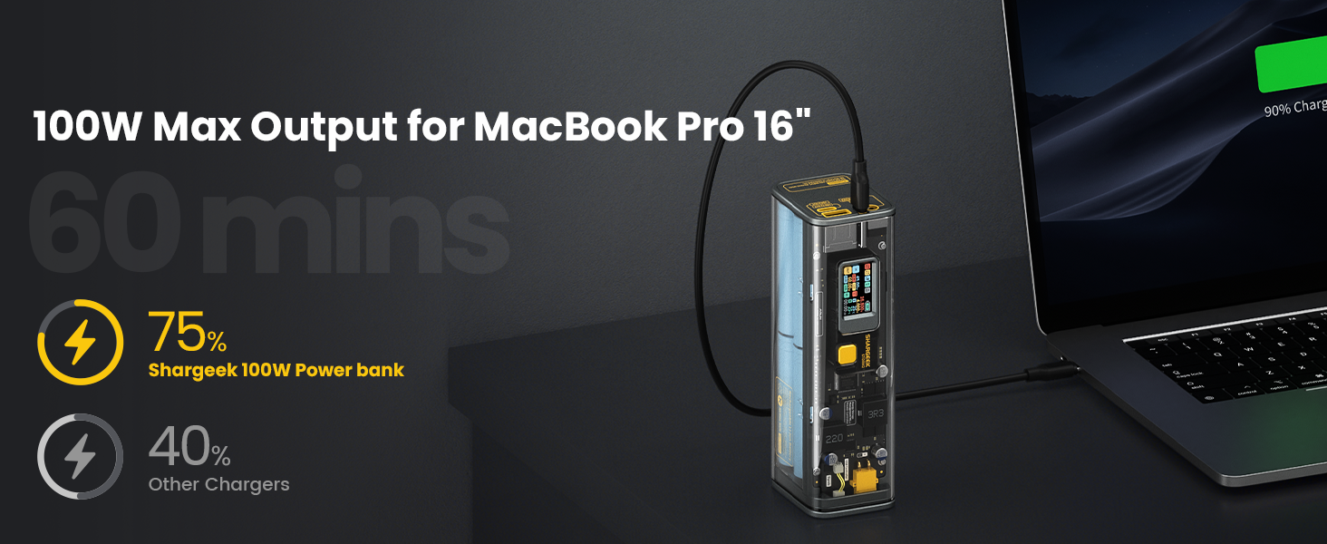 Sở hữu dung lượng pin lên đến 25.600mAh (tương đương 93.5Wh), Shargeek Storm 2 đáp ứng nhu cầu sử dụng trong cả ngày dài mà không cần phải tìm ổ cắm điện. Theo thử nghiệm thực tế, sản phẩm có thể sạc đầy iPhone 14 khoảng 4–5 lần, iPad Pro khoảng 2 lần và MacBook Pro khoảng 1–1.5 lần, tùy vào phiên bản máy.