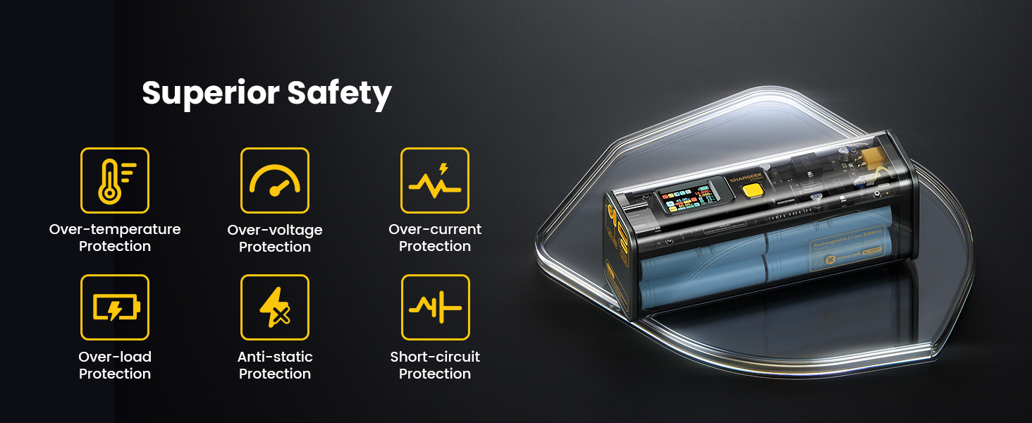 Không chỉ mạnh mẽ, Storm 2 còn được đánh giá cao về độ an toàn. Tích hợp chip IC thông minh cùng hệ thống bảo vệ toàn diện gồm chống quá nhiệt, quá dòng, quá áp, ngắn mạch và xung điện – tất cả nhằm đảm bảo an toàn tuyệt đối cho cả thiết bị lẫn người dùng.