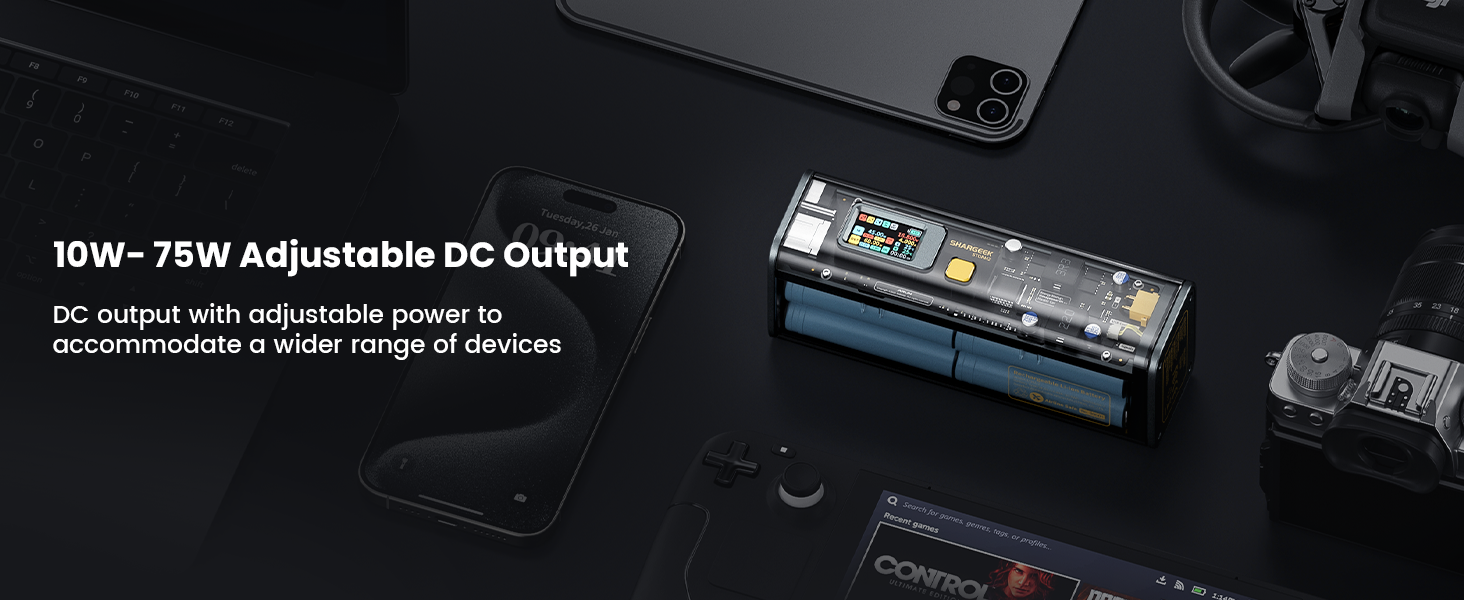 Cổng USB-A tích hợp Quick Charge 3.0 giúp sạc nhanh cho các thiết bị đời cũ, đồng thời cổng DC có thể tùy chỉnh điện áp từ 3.3V đến 25.2V, hỗ trợ linh hoạt cho các thiết bị đặc thù sử dụng nguồn điện DC.
