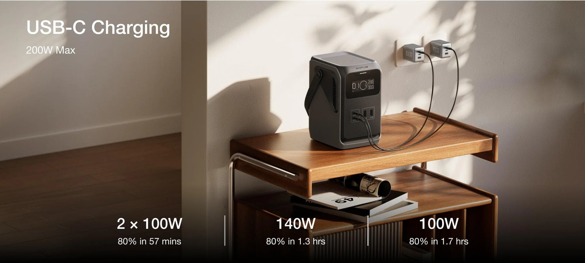 Cổng USB-C: 1 × 140 W, 1 × 100 W (In/Out).